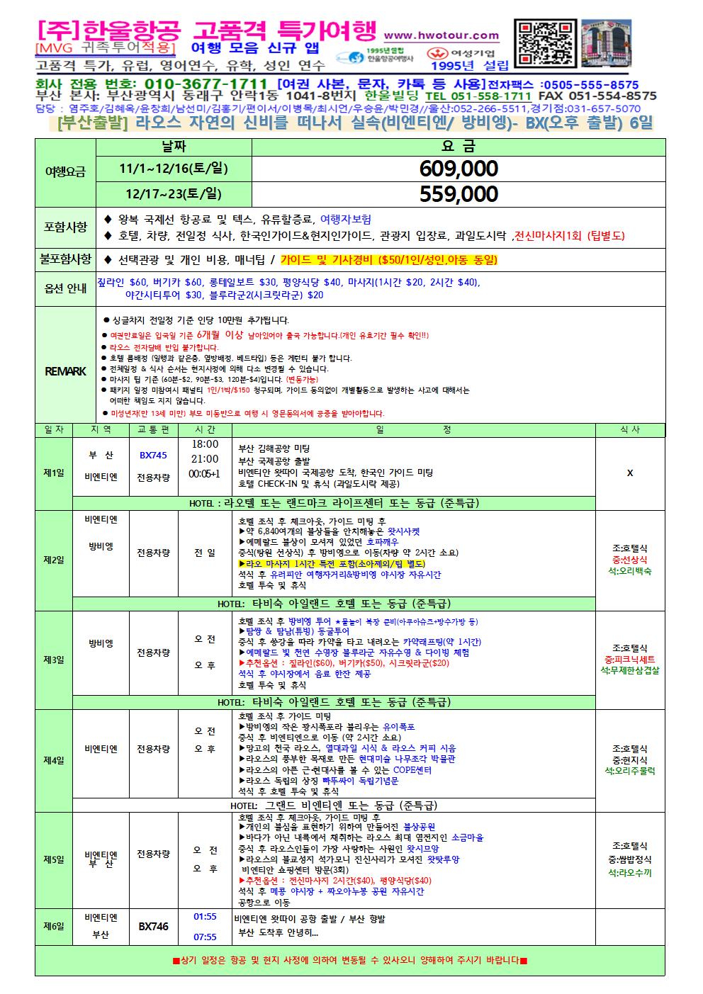 [부산 출발] 라오스 천혜의 자연 속 힐링 6일 우리 함께 느끼며 떠나보세요!!!- 에어부산- 실속(비엔티안/ 방비엥)